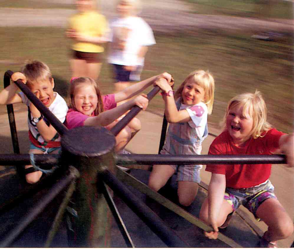 Glade Sauda-barn på karuselltur i en av Åbøbyens parker.